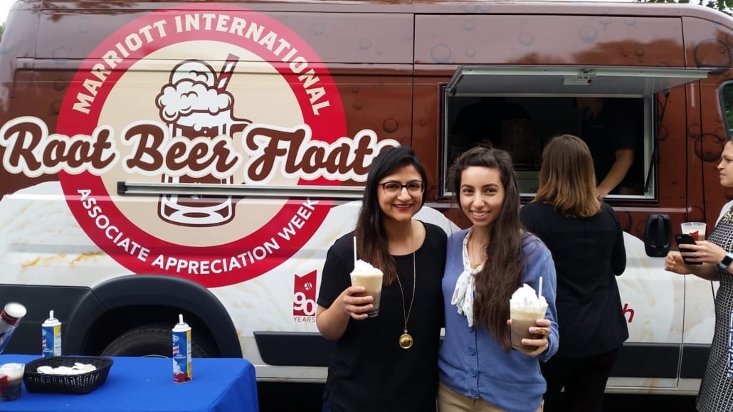 Scoops2u has custom wrapped an ice cream truck and carts with Marriott’s unique design and has been touring Marriott properties throughout the DC area this week. And the best part…they’re serving up free root beer floats made with premium homemade ice cream and none other than A&W Root Beer!